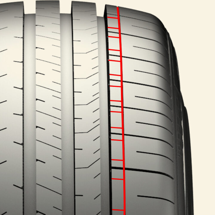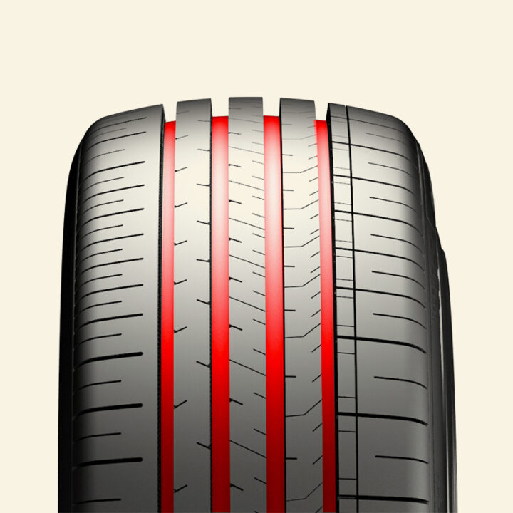 A variety of sipes distributed on the inner ribs creates extra gripping surfaces for enhanced safety and ride comfort.