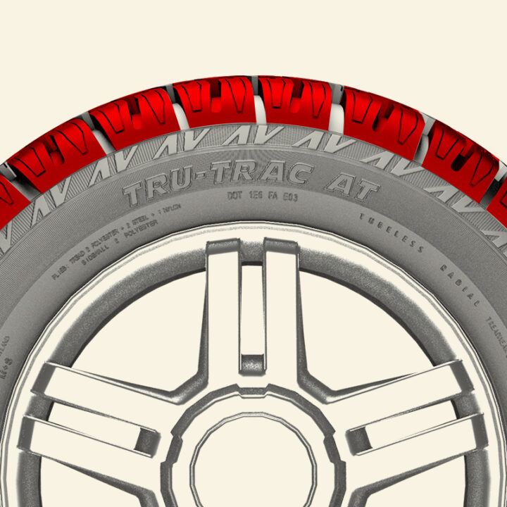 True to the Armstrong TRU-TRAC legacy, this All-Terrain tire provides excellent performance on any road, and under tough road conditions delivers high-speed stability, greater steering response, and maximum comfort. Its design also reduces irregular wear and inhibits block wriggling.